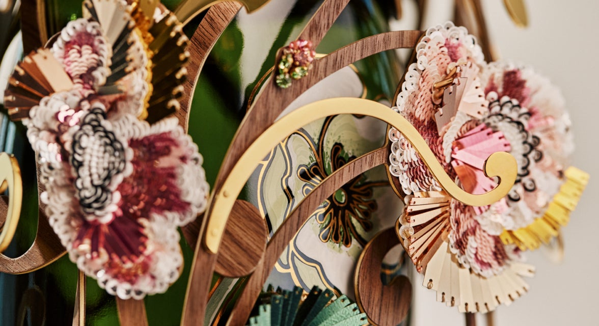 „Ode à la Nature – Volutes“ bildet das zweite Kapitel der Zusammenarbeit zwischen der Maison Perrier-Jouët und dem Atelier Montex, die 2024 mit der Kreation von „Ode à la Nature – Libellule“ begann. Dieses Paar kunstvoll bestickter Libellenflügel, die einen Jeroboam Perrier-Jouët Belle Epoque Champagner umfangen, wurde von einem Beistelltisch aus Walnussholz inspiriert, einem Entwurf Emile Gallés, dessen geschnitzte Beine Libellen darstellen. Das bemerkenswerte Möbelstück ist in der Maison Belle Epoque zu bewundern, einem Haus in Epernay, das die prachtvolle Art Nouveau-Sammlung von Perrier-Jouët beherbergt. Mit seinen Möbeln, Dekorationsgegenständen und Kunstwerken ist es die größte Privatsammlung von französischem Jugendstil in ganz Europa.