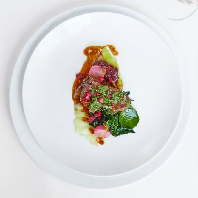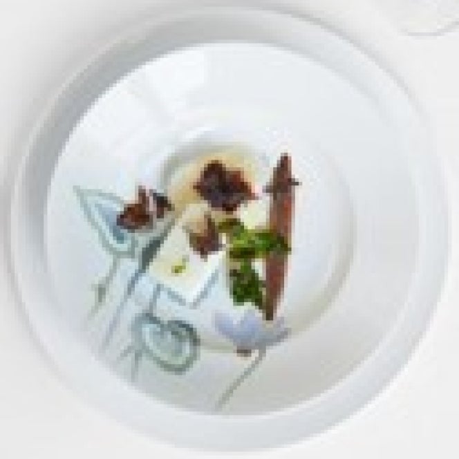 Seine extrem puristische Küche passt gut zur Raffinesse der Perrier-Jouët Champagner. Auf überwiegend pflanzlicher Basis und mit blumigen Highlights ist sie fest im heimischen Terroir verankert.