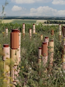 In partnership with a team of scientists and experts, the renowned design studio of Formafantasma has been developing a multi-disciplinary initiative for over two years — a long-term undertaking projected towards a better future in the form of an architectural installation for biodiversity, Cohabitare, located in Perrier-Jouët’s Agusons vineyard in Ambonnay, Champagne, France.