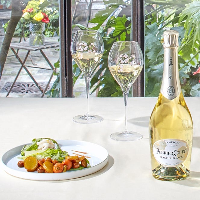 with carrot tops, button mushrooms & Perrier-Jouët Blanc de Blancs