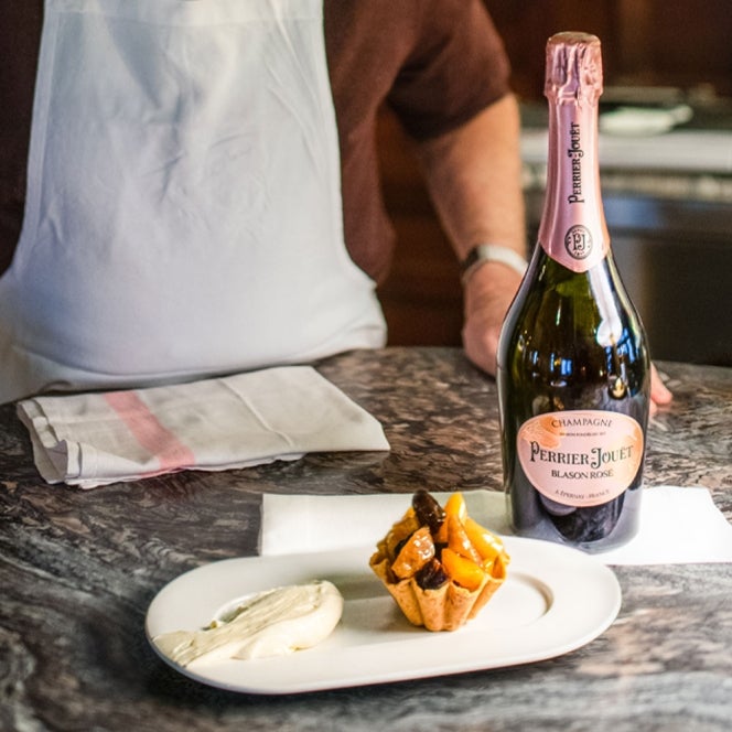 with apricots, fresh almonds & Perrier-Jouët Belle Époque Rosé 2010