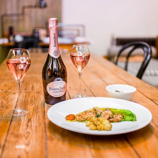 with morel mushrooms & Perrier-Jouët Blason Rosé