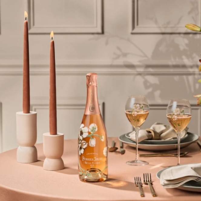 Opt for elegant champagne bottles to complement your decor. Bottles from the Belle Epoque collection are adorned with Japanese anemones, echoing the close connection between Maison Perrier-Jouet and Art Nouveau. These cuvées will add a floral touch to your enchanting ambiance. This poetic and natural universe is presented by Perrier-Jouët with its campaign “Fill your world with wonder' to promote biodiversity."