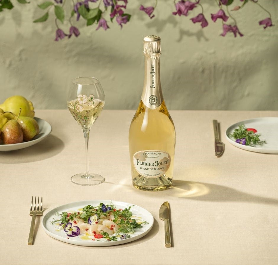 Perrier-Jouët Blanc de Blancs is crafted exclusively from Chardonnay and is particularly refreshing, making it perfect for summer menus. “It pairs wonderfully with carpaccio of sea bass”.