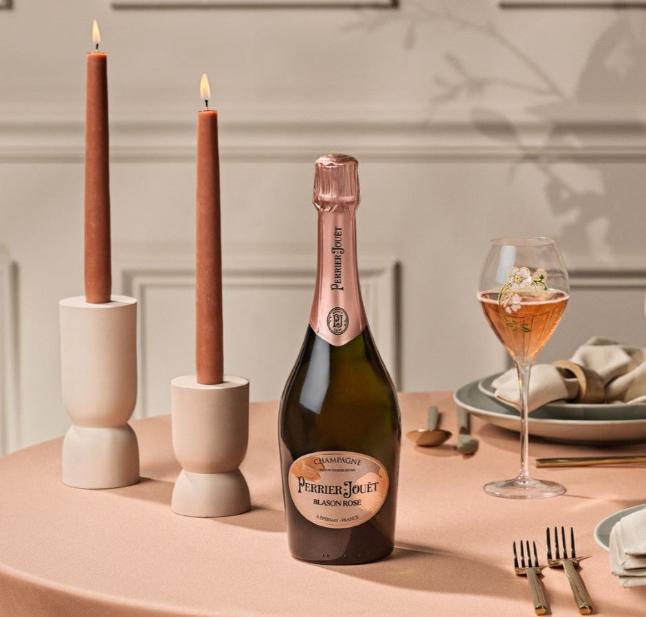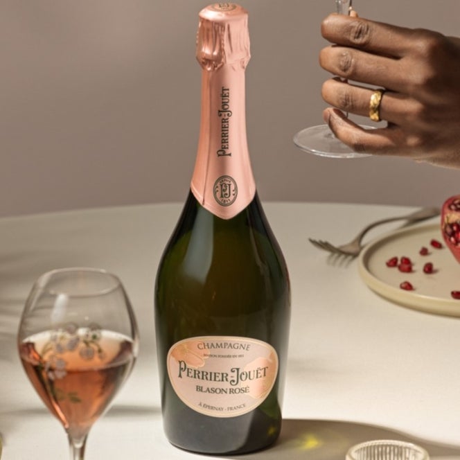 Perrier-Jouët Blason Rosé is a blend of Pinot Noir, Chardonnay and Meunier specifically designed to bestow the wine with the necessary power to suit many pairings, making it the perfect partner for celebratory meals from starter to dessert.