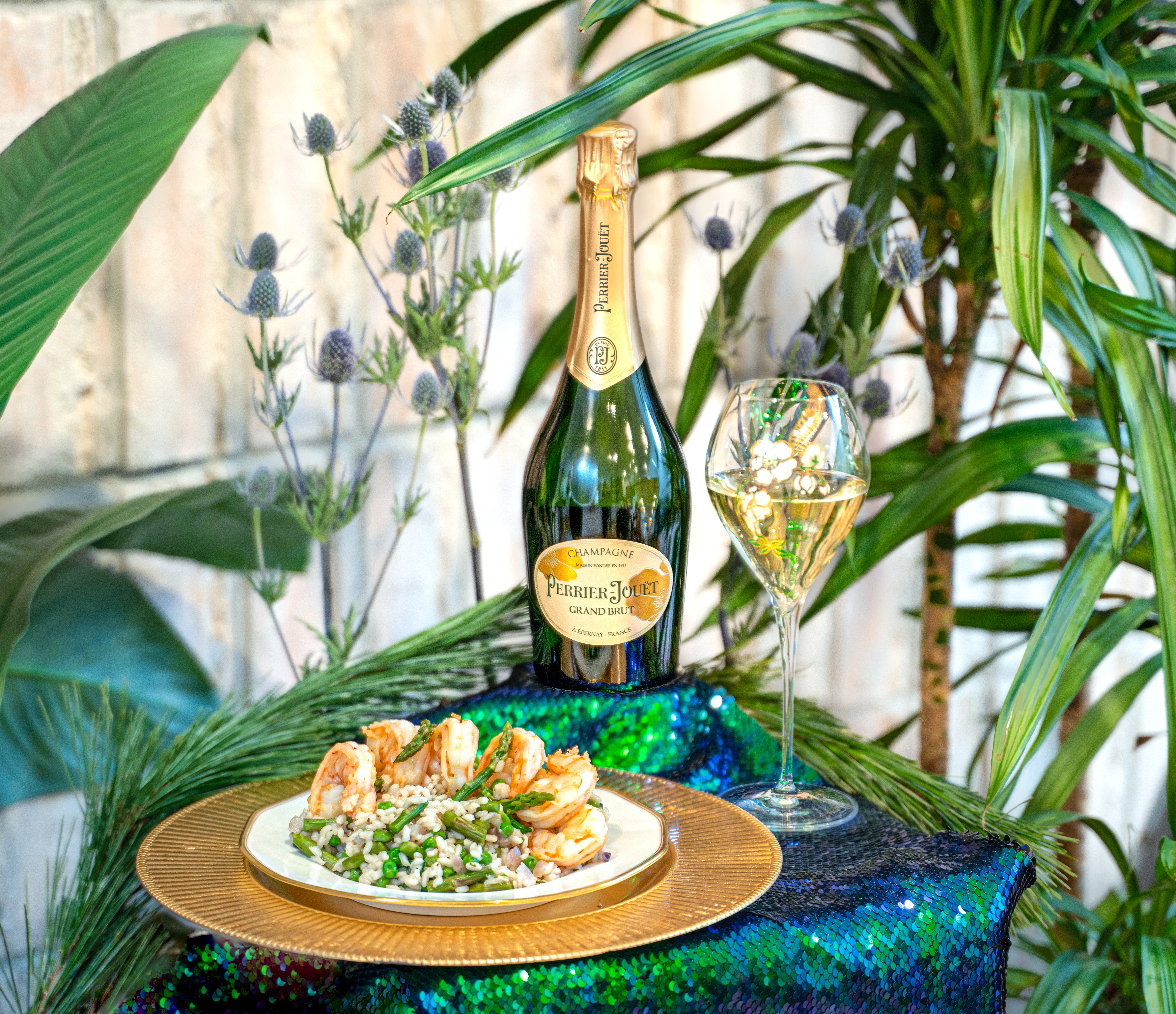 Fresh Vegetable Risotto with Sautéed Shrimp with Perrier-Jouët Grand Brut