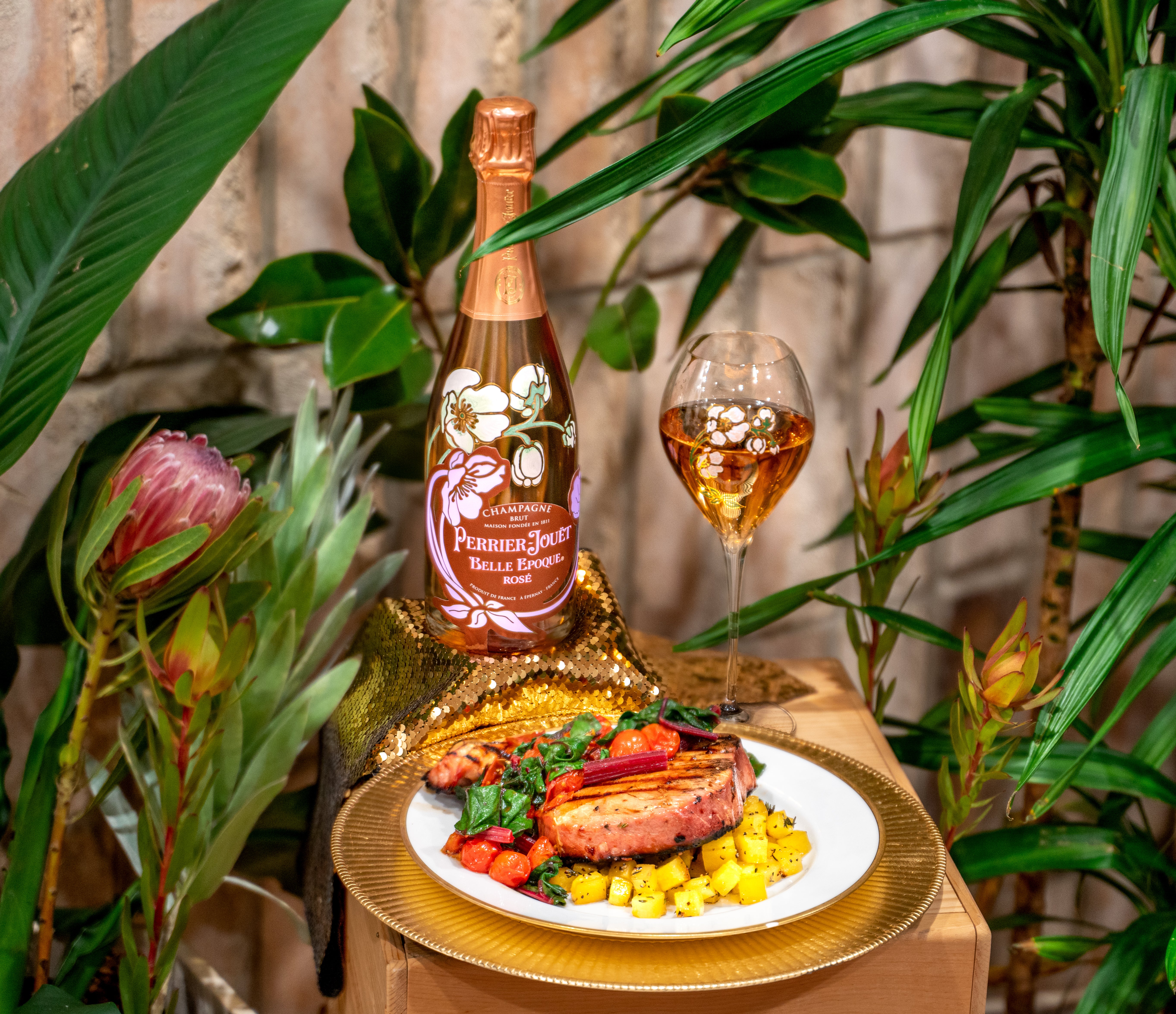 Honey Glazed Grilled Tuna with Blistered Grape Tomatoes, Swiss Chard & Roasted Turnips with Perrier-Jouët Belle Epoque Rosé