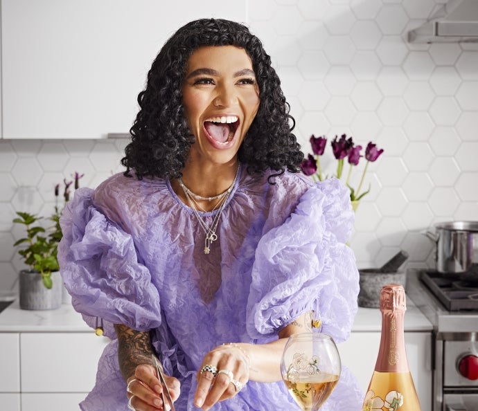 In this beautiful dessert, jewel-like dates, figs, currants and apricots are lifted by the luminous, honey-like qualities of the Perrier-Jouët Blason Rosé. Chef Pierre Gagnaire brings together, macerated dried fruit, crisp pastry, and a touch of creamy burrata to create a sophisticated dish that truly celebrates the flavors of the season.