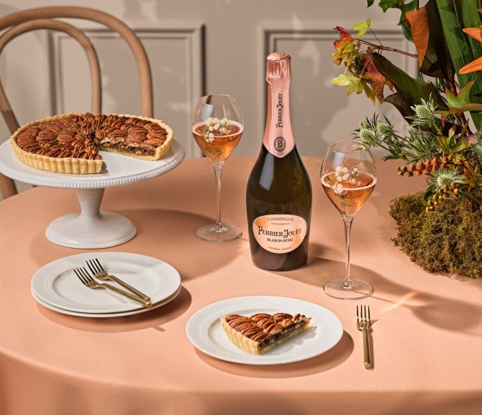 This Thanksgiving, elevate your dessert experience with a slice of warm, gooey pecan pie. Its sweet, nutty flavors and buttery crust embody the essence of the season. For the ultimate pairing, pop open a bottle of chilled Blason Rosé champagne. The contrast between the pie's caramelized pecans and the champagne's crisp acidity creates a delightful harmony on your palate. As you savor each bite of pie and sip of champagne, the combination offers a symphony of tastes and textures, making your Thanksgiving celebration truly memorable. So, gather your loved ones, raise your glasses, and give thanks for the delicious moments shared around the table. Cheers to pecan pie and champagne – a perfect union for the holiday season!