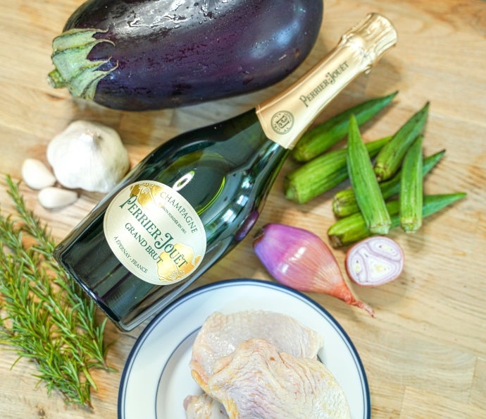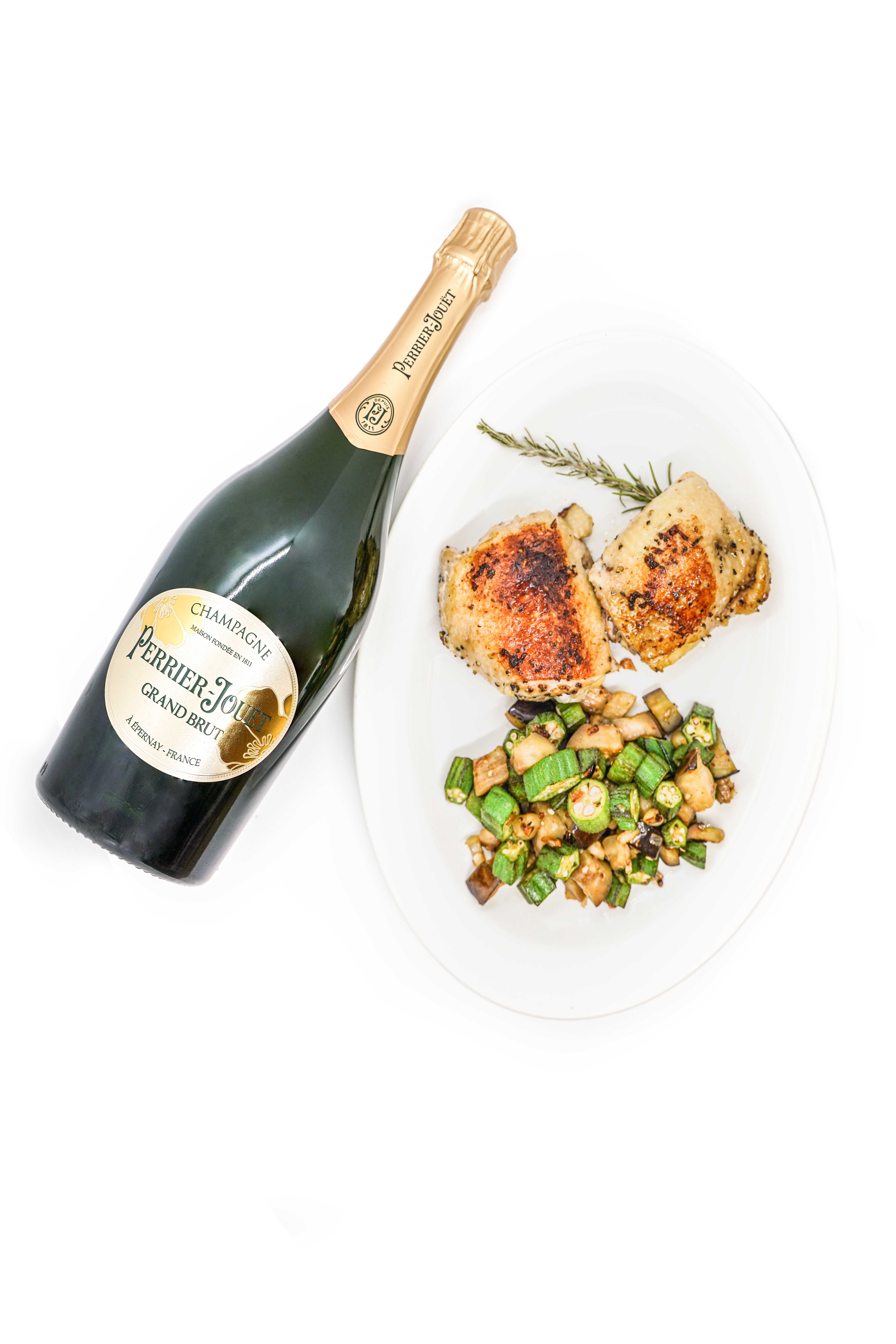 Sous Vide Chicken Thighs with Sautéed Eggplant & Okra (serves 2-4)