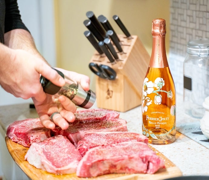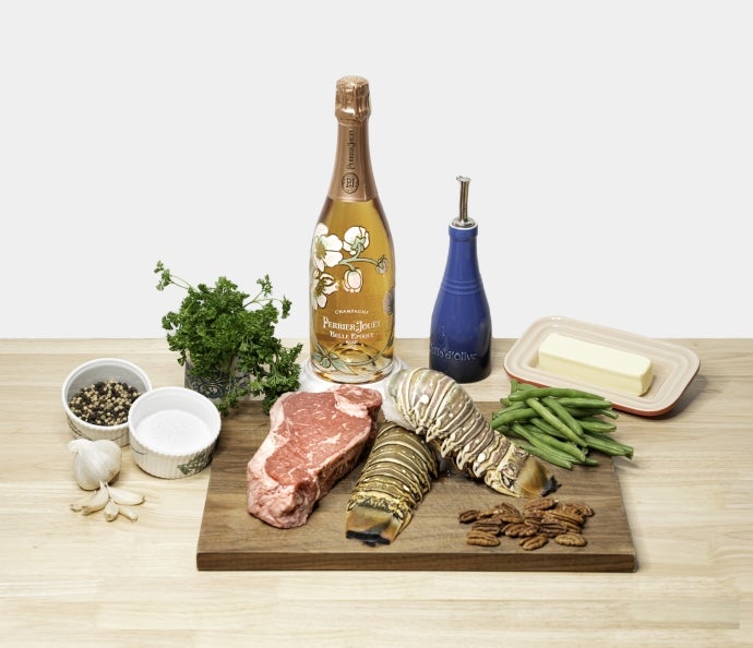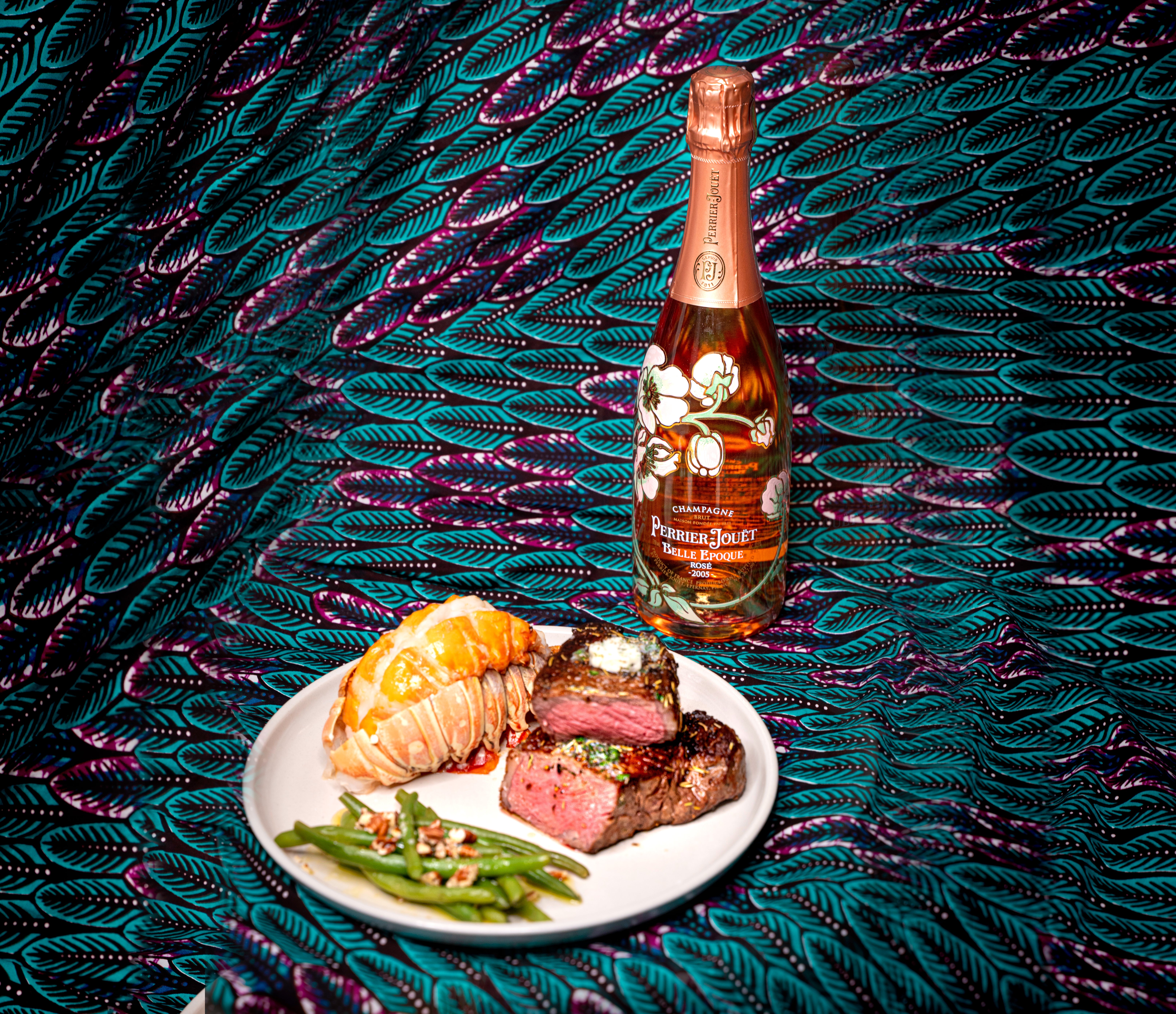Surf & Turf with Steamed Green Beans & Toasted Pecans with Perrier-Jouët Belle Epoque Rosé
