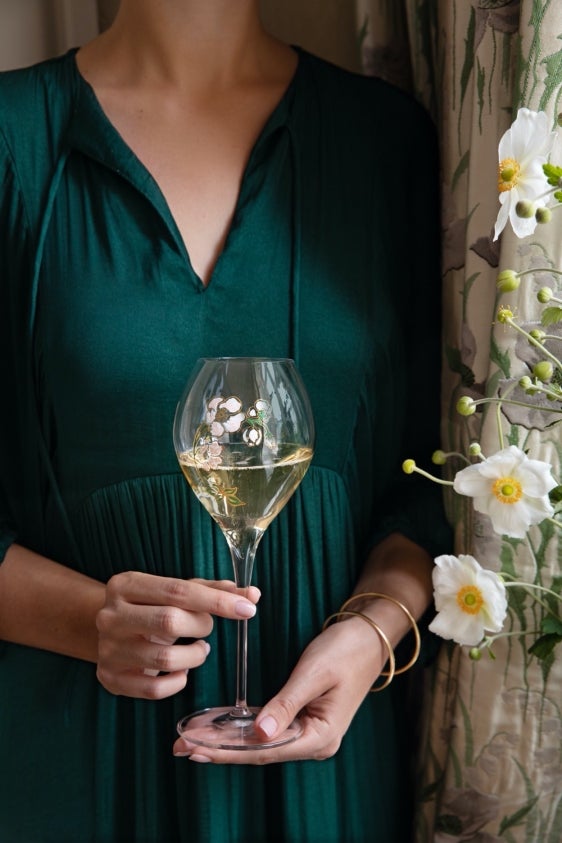 - Hold your glass of champagne by stem versus the bowl, to ensure the warmth of your hand does not transfer to the wine.