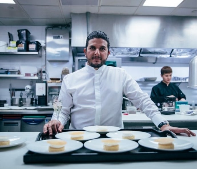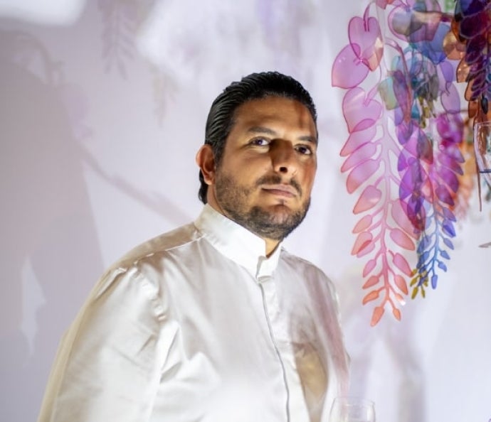 Akrame Benallal displaying his passion for cooking, art and champagne