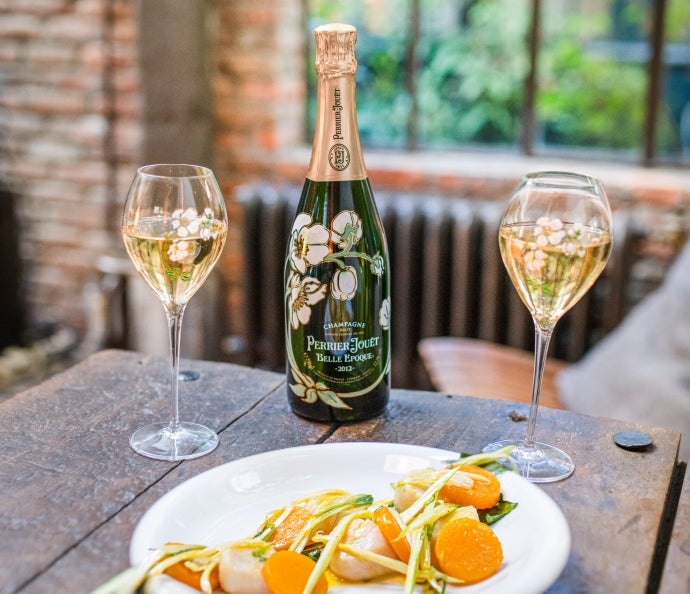 The cuvée is not just for cooking, of course. Perfect for a celebratory meal, these fragrant scallops are an exquisite match for a glass of Perrier-Jouët Belle Epoque, displaying distinctive floral aromas and hints of toasted brioche.