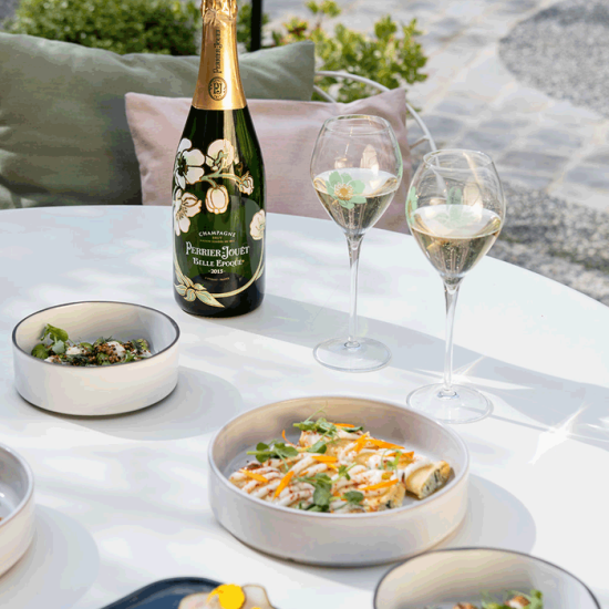 The Perrier-Jouët Cellier Belle Epoque is a unique, endlessly inviting spot in which to taste the House’s finest cuvées, paired with our latest culinary creations.