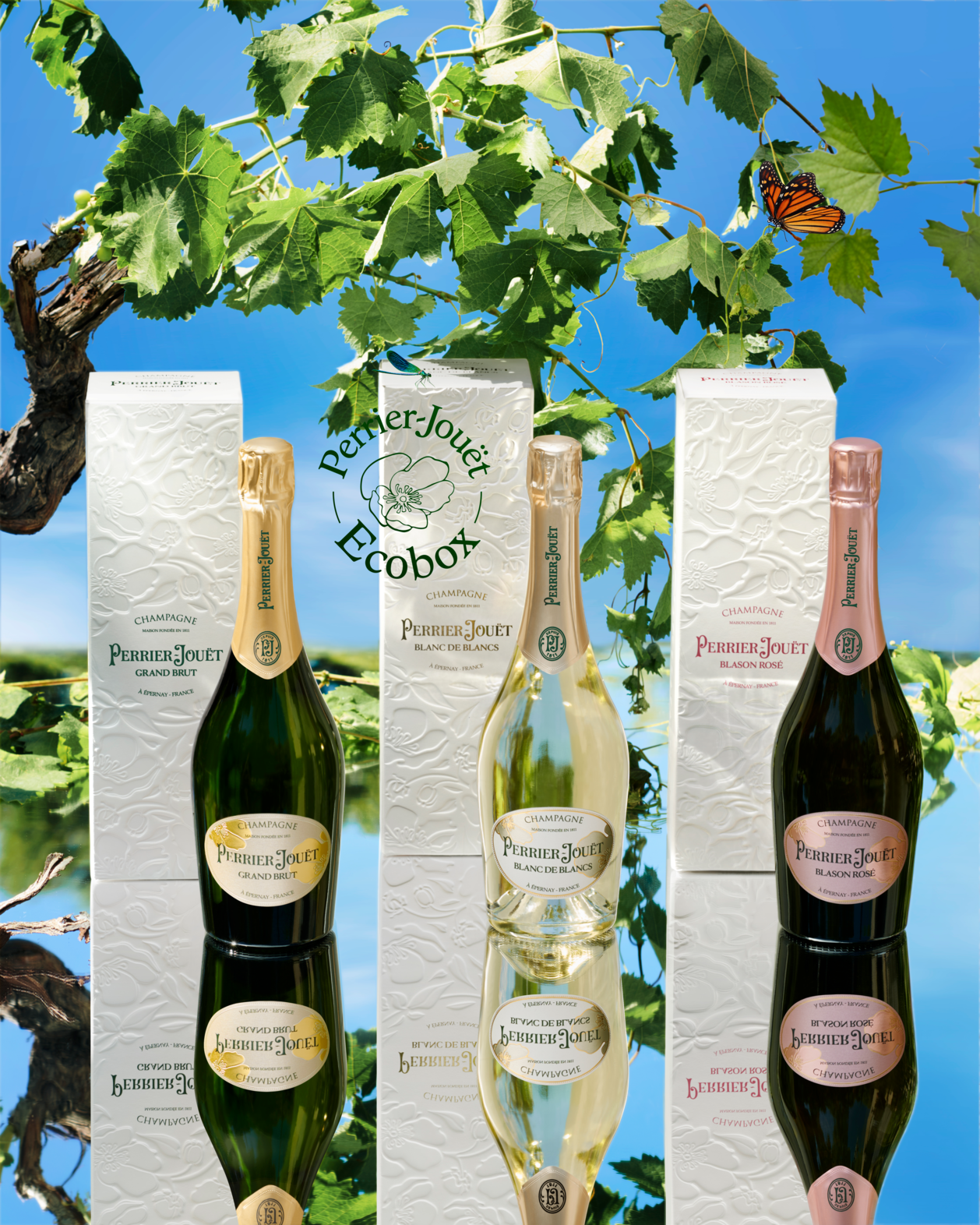 Ce nouveau coffret éco-conçu est né de l’étroite relation qu’entretient la Maison Perrier-Jouët avec la nature. Il fait partie des initiatives de la Maison visant à respecter et protéger l’environnement.