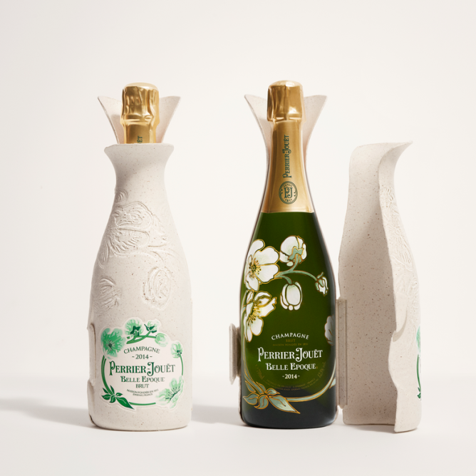 Perrier-Jouët Belle Époque Cocoon enveloppe les cuvées millésimées Perrier-Jouët Belle Époque Brut et Perrier-Jouët Belle Époque Rosé. Il est composé de deux matériaux. Il associe de la pulpe de papier provenant de forêts gérées durablement (certifiées par le label FSC) et des sarments de vigne à hauteur de 5%. Récoltés au cœur du vignoble, ces sarments proviennent de la taille pratiquée à la sortie de l’hiver et sont revalorisés pour entrer dans la composition de ce coffret unique.
