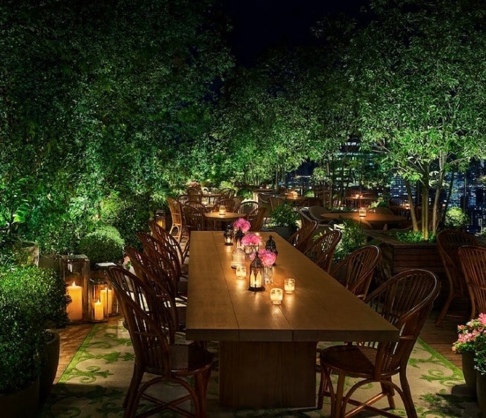 落ち着いた雰囲気の美しい「Garden Terrace」は、忙しい都会の日常からゲストを解き放ちます。季節ごとに変化する樹木や、テーブルに飾られたハーブやグリーンが演出する魅力的な空間で、「The Jade Room」のキッチンで調理された料理を